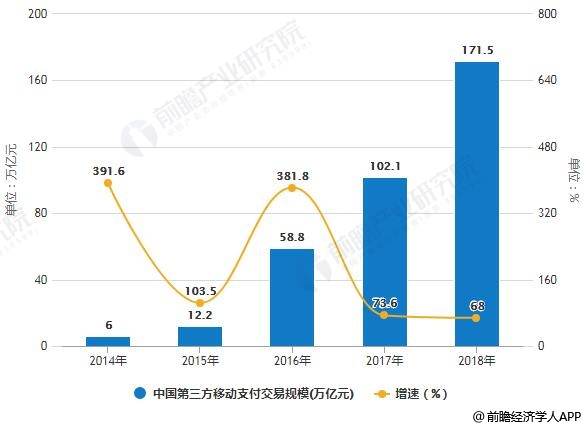 2018年中国第三方移动支付交易规模将超170万亿