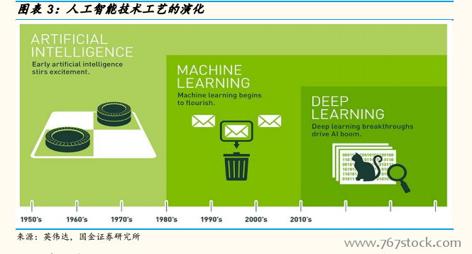 三种主流人工智能演算法。最早的人工智能出现及运用在 1950-1980 年代,接着转换到 1980-2010年机器学习,从 2010 年以后,随着各种演算法 CNNs, RNNs, DNNs 等图影像视觉学习,辨识,推理的普及,让深入人工智能深入学习的突飞猛进。深度学习是人工智能和机器学习的一个子集,它使用多层人工神经网络在诸如对象检测,语音识别,语言翻译等任务中提供最先进的准确性。深度学习与传统的机器学习技术的不同之处在于,它们可以自动学习图像,视频或文本等数据的表示,而无需引入手工编码规则或人类领域知识。它们高度灵活的架构可以直接从原始数据中学习,并在提供更多数据时提高其预测准确性。人工智能的深度学习最近取得的许多突破,例如谷歌 DeepMind 的 AlphaGo 及更强大的AlphaZero 陆续 在围 棋, 西洋 棋类 比赛 夺冠 ,谷 歌 Waymo, 英 伟达 的Xavier/Pegasus 320, 及 Intel/Mobileye 的 Eye 4/5 自动驾驶汽车解决方案,亚马逊的 Alexa, 谷歌的 Google Assistant, 苹果 Siri,微软的 Cortana, 及三星的Bixby 智能语音助手等等。借助加速的深度学习框架,研究人员和数据科学家可以显着加快深度学习培训,可以从数天或数周的学习缩短到数小时。当模型可以部署时,开发人员可以依靠人工智能芯片加速的推理平台来实现云,边缘运算设备或自动驾驶汽车,为大多数计算密集型深度神经网络提供高性能,低延迟的推理。