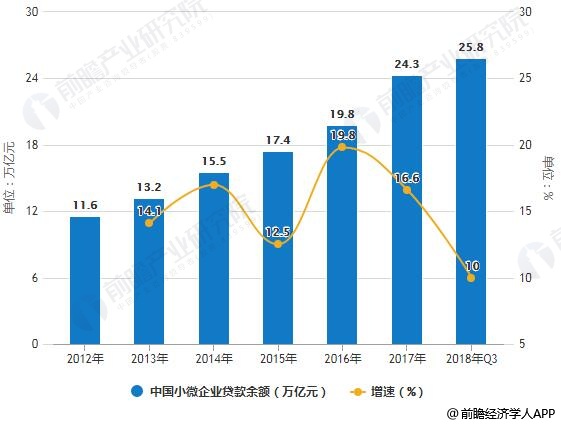 2012-2018年Q3中国小微企业贷款余额统计及增长情况