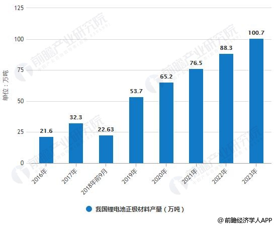 预测2019年中国锂电池正极材料产量将突破50万吨