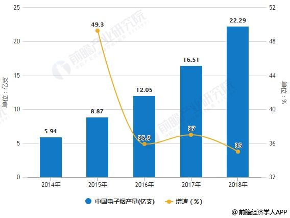 2018年中国电子烟产量将超22亿支