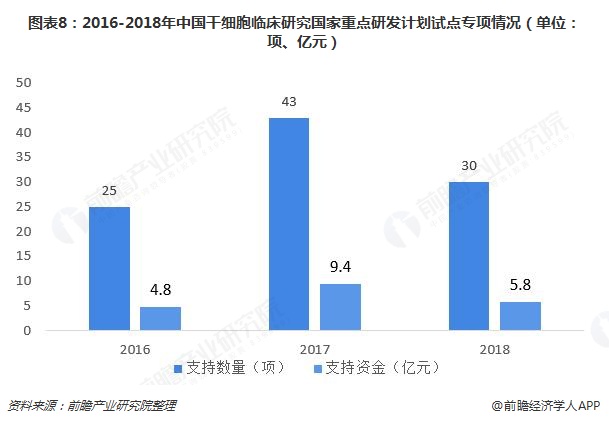 统计数据显示,自2015年第一批国家重点研发计划试点专项启动后,该重点专项至今已连续3年获得中央财政拨款扶持:2016年,25项,4.8亿;2017年,43项,9.4亿;2018年,30项,5.8亿,总计超过20亿元。充分体现了国家从科技创新体制的国家顶层设计中对干细胞与再生医学领域的高度重视。