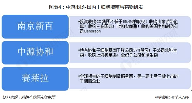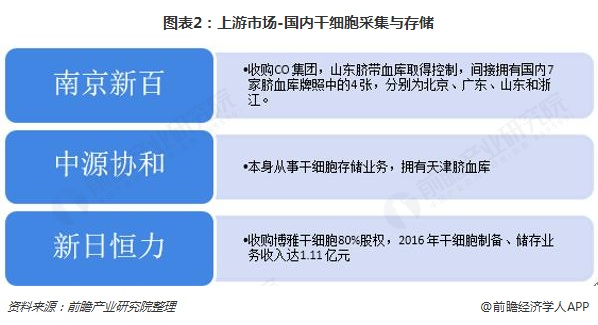 由于干细胞采集与存储商业模式与技术应用相对成熟,因此国内上市公司以上游产业相关业务为主。