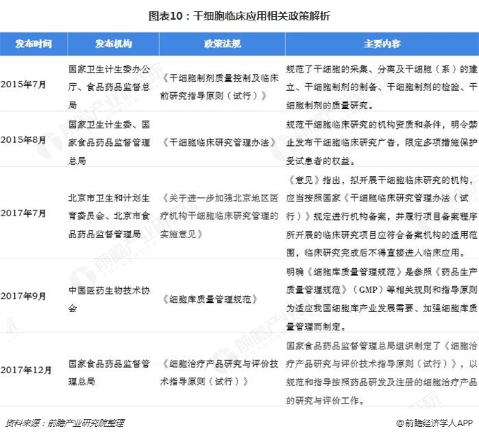 为了干细胞治疗的重要性和临床应用前景,国内积极开展整治,先后颁布了《干细胞制剂质量控制及临床前研究指导原则(试行)》、《干细胞临床研究管理办法》、《细胞治疗产品研究与评价技术指导原则(试行)》等政策法规,促使行业良性发展。