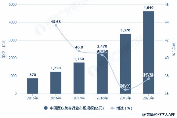 2015-2020年中国医疗美容行业市场规模统计及增长情况预测