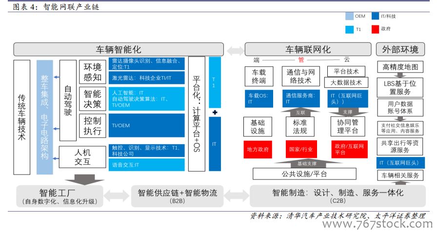 汽车智能化+V2X=智能网联汽车。智能网联汽车是自动驾驶汽车和网联汽车的有机结合。我国节能与新能源汽车技术路线图战略咨询委员会、中国汽车工程学在《节能与新能源汽车技术路线图》中提出,智能网联汽车发展包括智能化与网联化两个层面。
