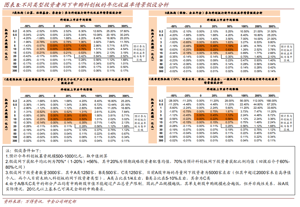 对于参与科创板网下申购的可能收益率,中金分析师指出,规模越小,对应产品的年化收益率越高。