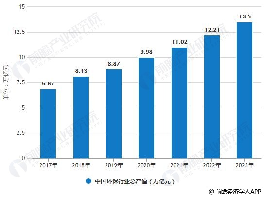 2017-2023年中国环保行业总产值统计情况及预测