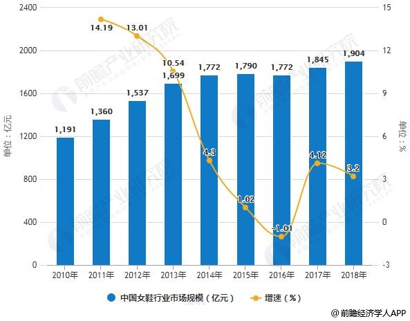 2010-2018年中国女鞋行业市场规模统计及增长情况预测