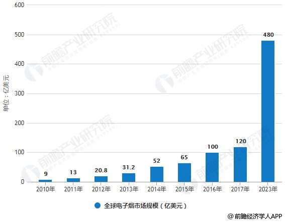 2010-2023年全球电子烟市场规模统计情况及预测