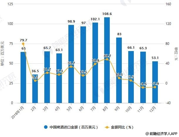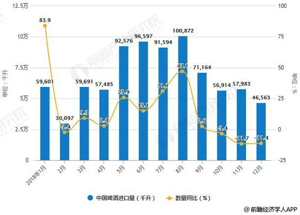 2018年1-12月中国啤酒进口统计及增长情况