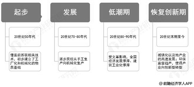 我国装配式建筑行业起步于20世纪50年代,当时借鉴了前苏联的相关技术,建立了初步化的产品生产工厂,也带动了国内机械化水平的提高,到了70年代,行业发展随着机械化水平的提高逐渐摆脱了手工生产而是向机械生产逐步过渡,由于受文革影响,行业经历了一段停滞期,直到20世纪末才渐渐发展起来,如今国内装配式建筑厂商越来越多,在环保监督趋严的环境下渐渐向产品创新型企业转型,使得装配式建筑进入高速发展及创新期,尤其是2016年以来,国家及地方多次出台指导性、惠普性及鼓励性政策,促进了装配式建筑产业的快速发展。