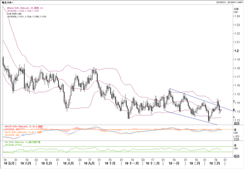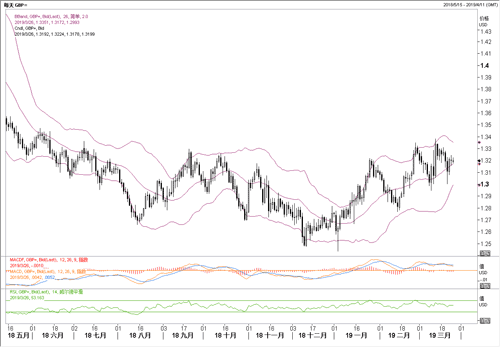 周一(3月25日)德国经济智库Ifo公布3月企业景气判断指数上升至99.6,高于预估的98.5,结束此前连续六个月下跌的势态。该数据短暂提振德国10年期公债收益率升至正值,扶助欧洲股市,并提振欧元兑美元适度上涨。上周五全球金融市场走势震荡,因在美国公债收益率曲线出现倒置后,市场担心美国经济将会走下坡路,其中10年期公债收益率跌至三个月国库券收益率之下。这些担忧引发股市和其他成长导向型资产遭到抛售,投资者纷纷投向日元、黄金、美债和德债等被认为风险较低的资产。目前尚不清楚欧元和新兴市场货币的温和反弹能否持续,因交易商仍对美国公债收益率曲线连续第二个交易日倒置持谨慎态度。从技术面看,MACD红色动能柱小幅收缩,KDJ指标向下进入超卖区域,预示汇价短线下行压力重新加大。若然欧元兑美元在1.13能形成新的牢固支撑价格区域,则有望进一步向上发展。倾向逢低入多欧元,上方若破1.1340,则继续看向1.14附近,止损控制在1.1270之下。