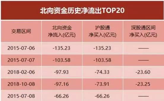 比如我们就拿着这个北向资金的流出数据来说,最多的2次是2015年7月6日和7月7日,当时数据显示分别流出130多亿,这是股灾后的一个月,属于第一波股灾接近末尾的阶段,当天沪指从高开暴涨7.8%,到最后只涨了2%,虽然最后结果是上涨,但这一天其实仍然是大跌走势。第二天也就是7月7日,接着跌了1.3%,随后开始了短暂的横盘震荡,1个月后才开启了股灾第二波。还有就是2018年2月6日,当日大盘下跌了3.35%,以及2018年的10月8日,指数下跌了3.72%。这都是流出资金上百亿的时刻。大家总结一下有什么共同点吗?相信很多人都看出来了,全都是指数大跌。其实一买一卖视为成交,有买家就会有卖家,而价格就是标尺,价格上涨,就说明买入的资金多过卖出资金,而价格下跌就说明卖出多于买入。所以当市场出现大跌的时候,按照这个逻辑,总会有资金大幅的流出。不是北向资金流出,也会是社保资金流出或者是机构资金流出。在某些软件里更是会告诉你主力资金大幅减仓。