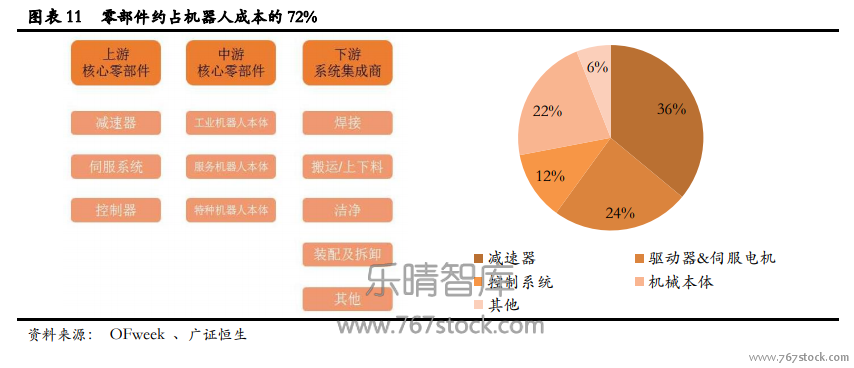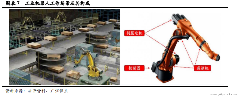 工业机器人是控制器的重要下游领域。在自动化生产中,工业机器人整体,包括自有控制器,属于 PLC 控制下的一个部分,而且自有的控制器通常属于专业控制器或 PC-based 控制器,两种控制器技术共用,主要差别在于对应用领域是否专业化。