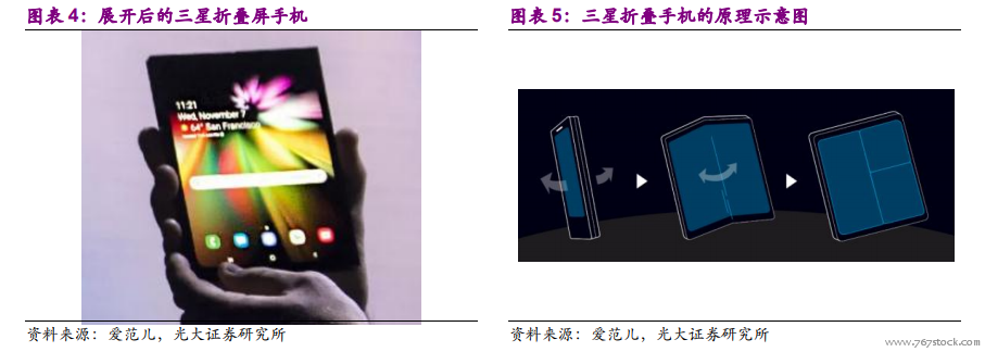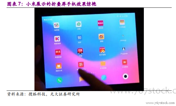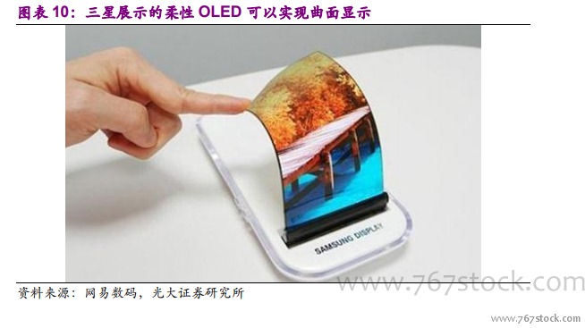 柔性 OLED 是折叠屏的基础,需求有望放量。LCD 与 OLED 目前最主要的两种显示面板技术。LCD 由于采用玻璃封装,且需要背光模组,所以无法实现折叠功能。OLED 则通过使用柔性 PI膜来进行封装,可以制成具备折叠功能的柔性 OLED 面板,目前来看将成为折叠屏的唯一屏幕方案。