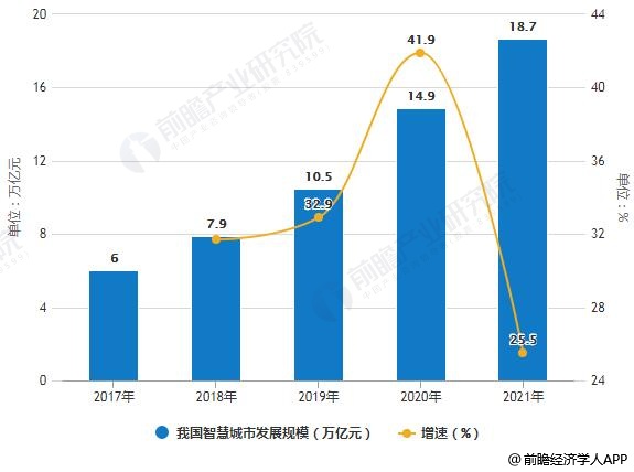 2017-2021年我国智慧城市发展规模统计及增长情况预测
