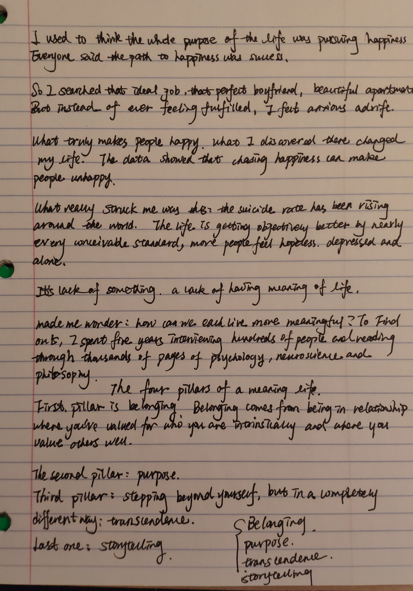 我的学习笔记 belonging storytelling purpose transcedence