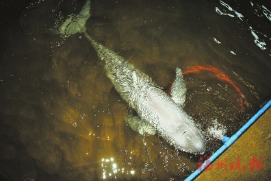 林长林说,当时有人出价7万元欲收购这只江豚,他当场劝说渔民不能卖,并小心翼翼地将江豚抬到自己的鱼池中,然后马上联系区海洋与渔业局下属的松下中队以及松下边防派出所,并亲自守在鱼池旁。