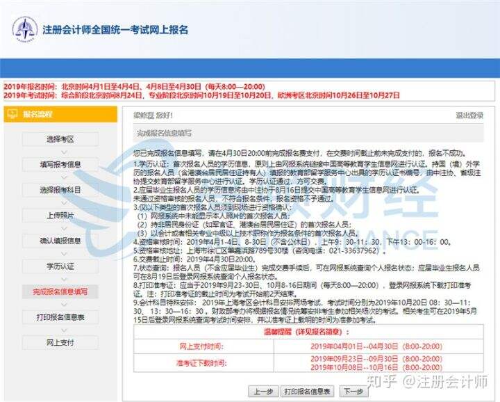 10.完成报名信息填写并打印报名信息表,请认真阅读完成报名信息填写界面的相关信息,准确掌握缴费时间、准考证下载时间等,在规定时间内完成相关事宜。
