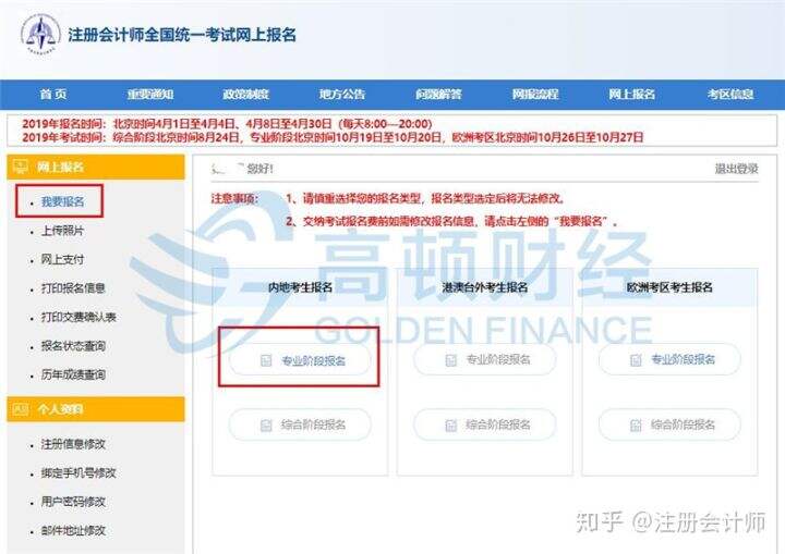 4.根据考生情况选择省份以及考区,注意阅读页面下方的报名简章。