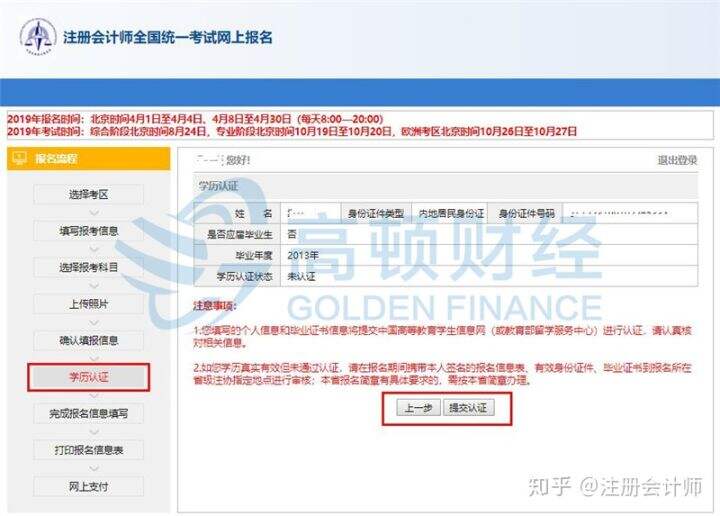 9.学历认证。首次报名人员的学历信息,由网报系统链接中国高等教育学生信息网进行认证,每位报名人员有一次验证机会,验证不通过后需要到地方考办进行处理,所以在填写相关信息时一定要认真填写,仔细阅读注意事项。