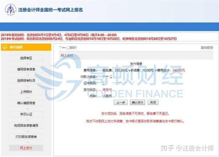 完成报名资格审核的报名人员,以及无需进行资格审核的报名人员、应届毕业生报名人员在报名信息填写完成后,通过网上支付界面的【确认支付】按钮,跳转到缴费界面,缴纳考试报名费用,缴费完成视为报名流程完成。