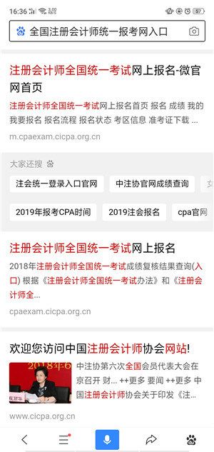 1.访问移动端的方式有两种,一是通过扫描PC端首页右侧的移动端入口二维码访问;二是通过关注“中国注册会计师协会”微信公众号,然后点开公众号界面底部的菜单项“公众服务”,在菜单中点击“ CPA考试网上报名 ”进行访问。