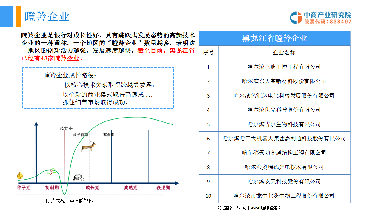 1、黑龙江百强企业、制造业百强、服务业百强、瞪羚企业。