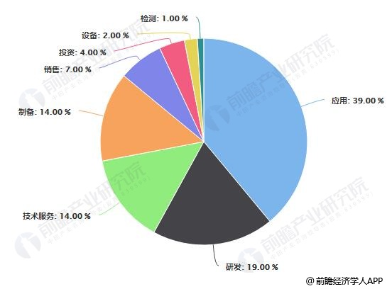 具体来看,目前在石墨烯产业中,涉及应用方面的企业最多,占比近四成。其次为研发领域,占比19%。技术服务、制备领域的企业数量各占14%。