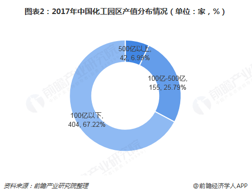 多年来,我国化工园区一直处于粗放式的快速发展模式。中国石油和化学工业联合会统计数据显示,2017 年底,我国共计拥有601 家化工园区,其中年产值100 亿元以下的园区有404 家。2018年官方数据暂未统计出来,但是整体分布趋势与2017年相差不会太大。这反映出我国化工园区数量过多,一些园区体量过小,协同效应、规模效应不明显。化工行业之所以要以园区形式发展,一方面是,要充分发挥产业集群效应,在产业链和规模上均实现最优化;另一方面,以园区化集中发展可以减少化工行业污染治理上的成本。但是,目前我国大部分化工园区体量小;粗放式发展引发的弊端也逐渐暴露出来,出现了安全环保等问题,产生了不良后果。