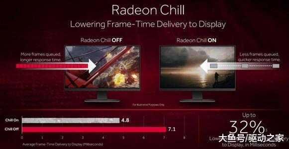 Radeon Chill是一项节能降温神技,主要原理就是通过驱动实时监控游戏状态,在玩家没有操作鼠标、键盘时自动降低帧率,一旦检测到玩家的操作,显卡会立即恢复之前的高性能运行状态。也就是说,Radeon Chill的原理是降低操作间隙时的帧数,而保持有操作时的帧数,这样在无形中降低了显卡功耗和温度,同时也不影响玩家的操作体验。
