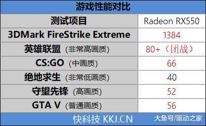 从测试结果来看,RX 550在CS:GO、DOTA2、LOL、守望先锋等热门网游都能有不错的帧率表现。在类似《GTA V》和《绝地求生:大逃杀》这样的大型游戏,在适当的降低画质,也能获得流畅运行的帧率。