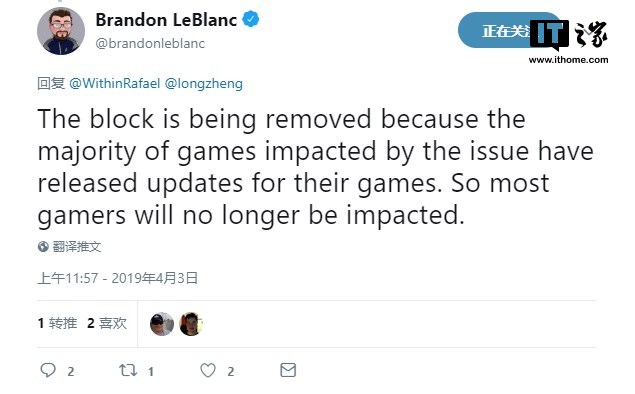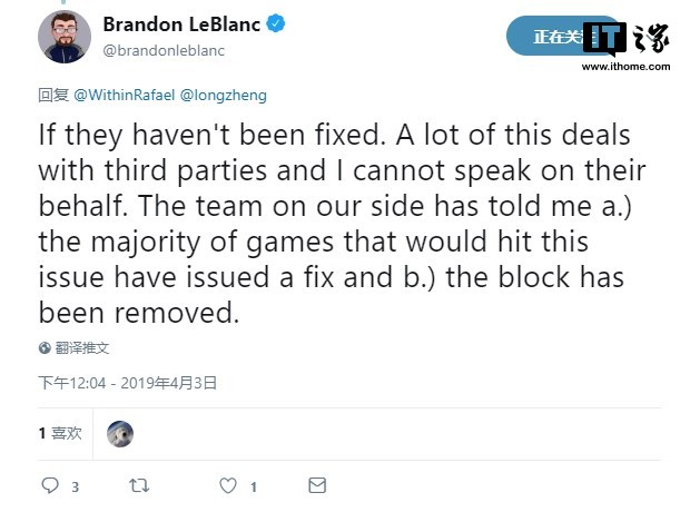 在谈到修复时,微软这一次明确表示不会再关注。相反,微软希望游戏开发者能够主动提供修复。好消息是,大多数开发者已经提供了修复。