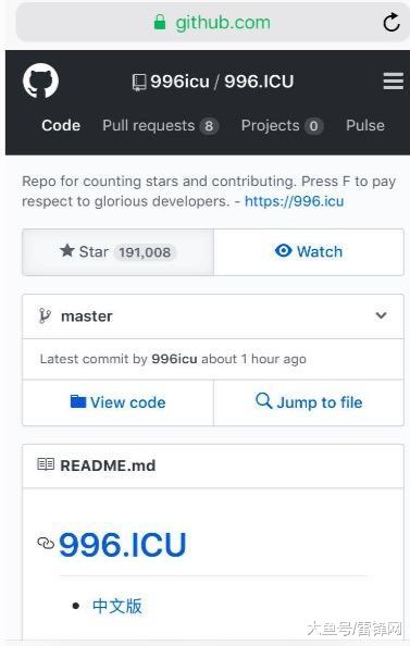 截至今日 16:30 为止,996.ICU 项目一共获得 19 万个 star 以及 1.5 万个 fork。