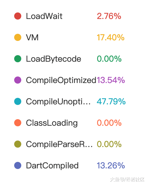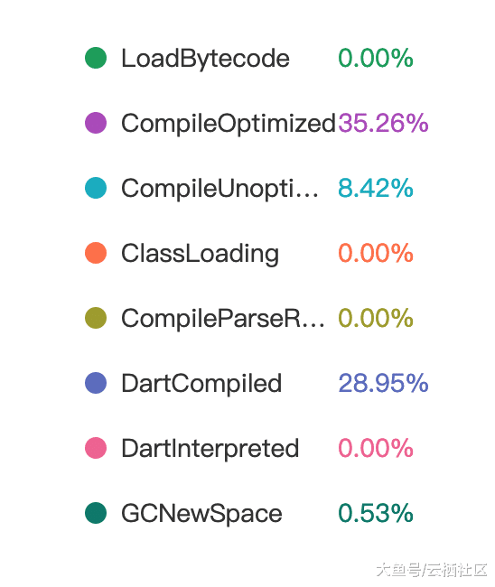 Dart App-jit模式 43%以上的时间参与编译,当然取消代码优化,可以让编译时间大幅下降,在优化情况下可以将这个比率下降到13%