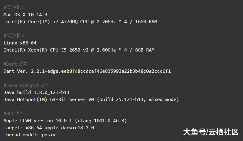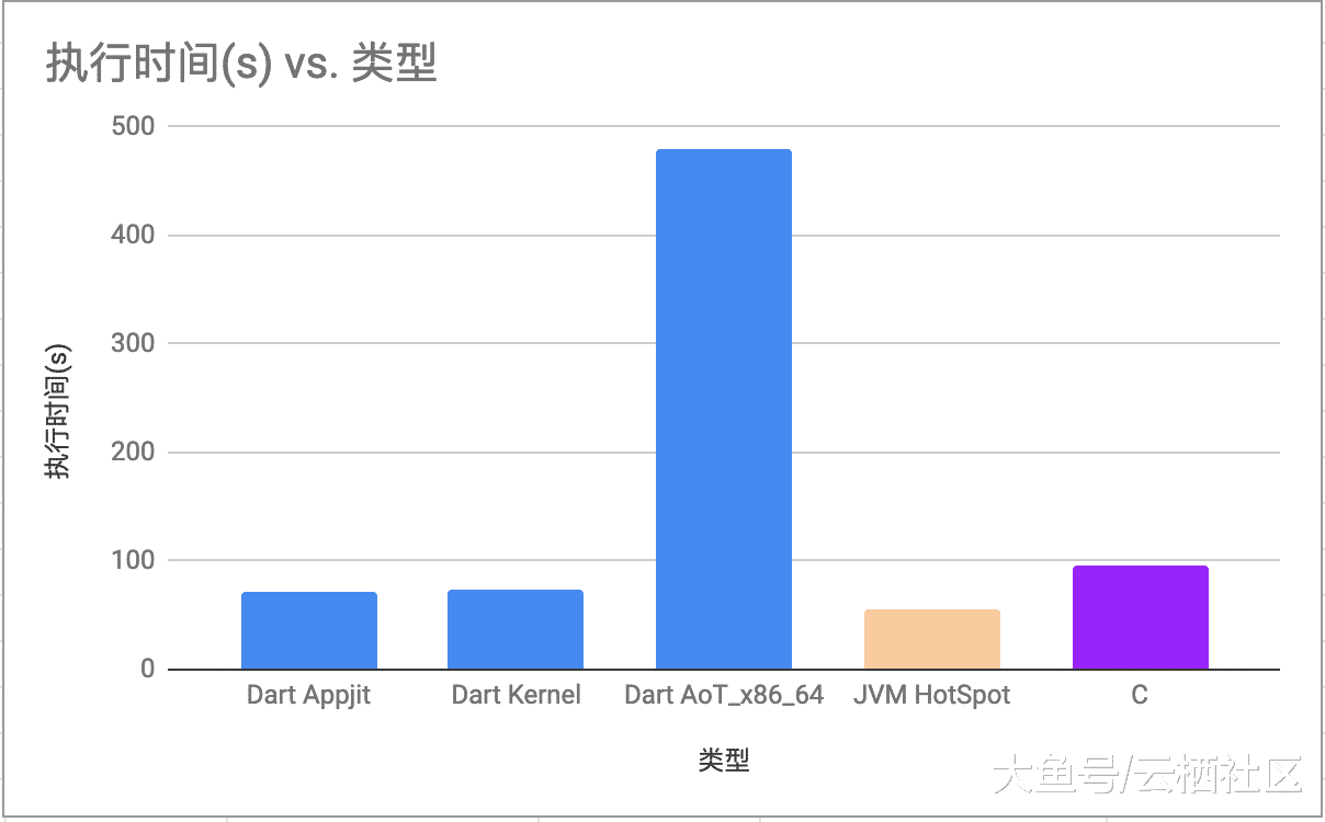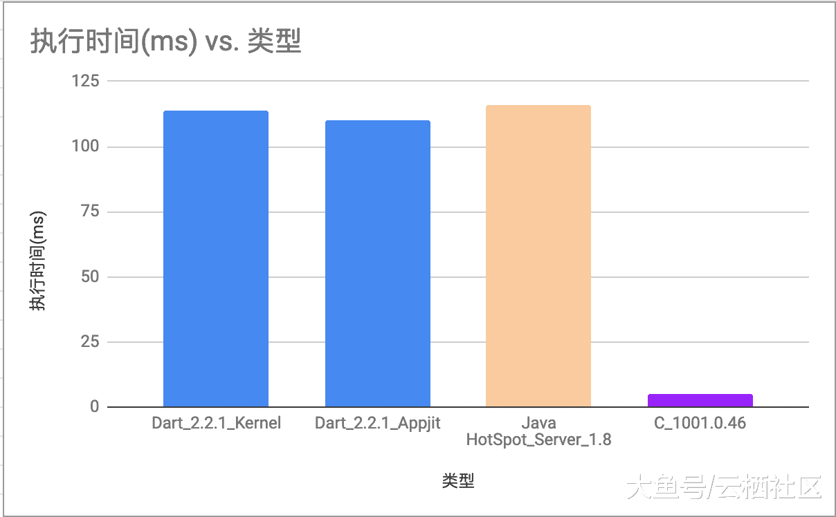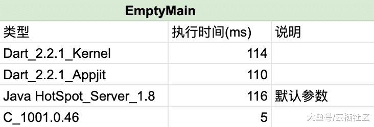 作为现代高级语言Dart和Java在启动速度上在同一水平线 C语言的启动速度是其它语言的20x,基本原因是C没有Java、Dart语言平台的Runtime