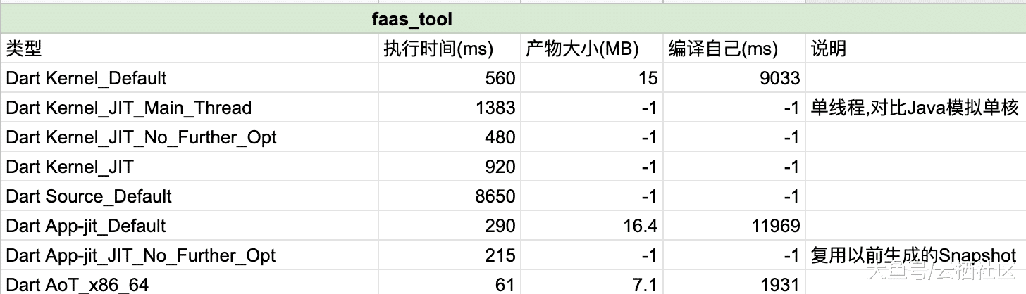 这次我们提供了基于AoT、Kernel、AppJIT的用例来执行Function构建流程,分别记录时间消耗、中间产物大小、产物生成时间。为了验证在JIT场景下DartVM是否可通过调整Complier的行为带来性能提升,我们增加了JIT的测试分组