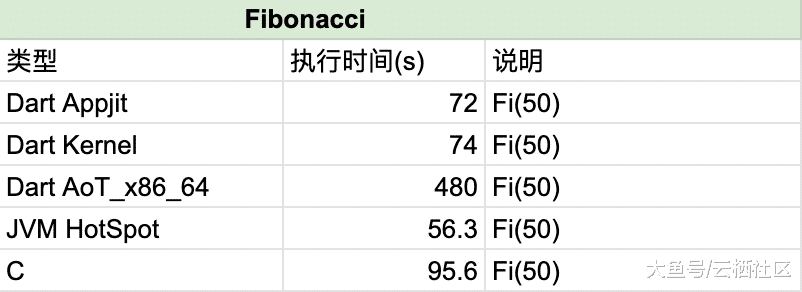 AoT由于自身的特性(和语言无关),无法在运行时基于Profile实现代码优化,峰值性能在此场景下要差很多,但是为何Dart VM比HotSpot有25%的差距?接下来我们针对Fibonacci做进一步优化