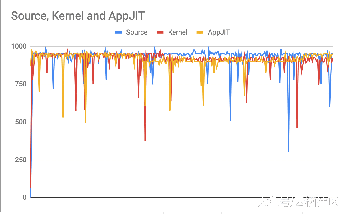 AoT>AppJIT>kernel,其中AoT比优化后的AppJIT有3倍左右性能提升,性能是Source的1000倍