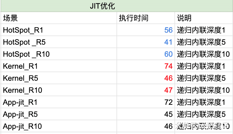 Kernel和AppJIT方式运行有稳定的微小差异,总体AppJIT优于Kernel