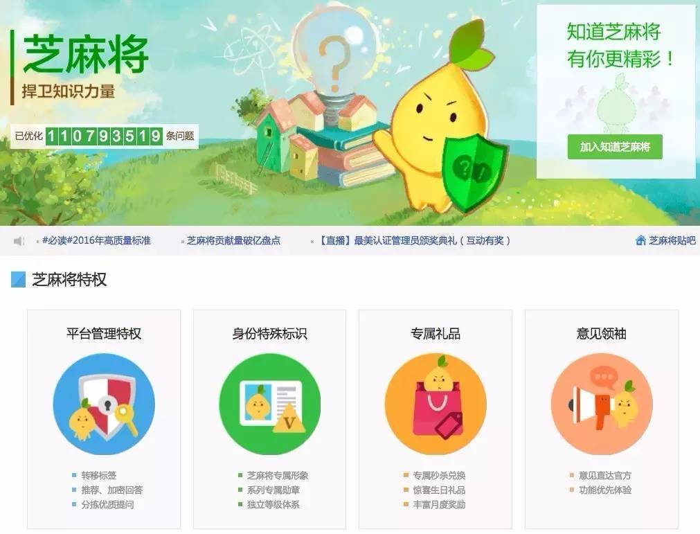 首先,要保证用户组织的产出与产品收益一致。比如百度百科的产品收益是词条编写数量,所以建立了「蝌蚪团」(下图),利用专属身份和编写特权来吸引和激励用户,更及时的产出量级更大和更优质的词条,与产品收益是一致的。再比如百度知道希望用户协助维护内容秩序,组织核心用户成立了「芝麻将」这个组织(下图),职责是转移分类、推荐或加密回答等内容管理的工作,与产品的收益也是一致的。