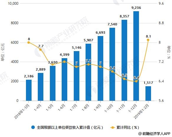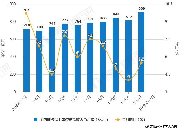 2018-2019年1-2月全国限额以上单位餐饮收入统计及增长情况