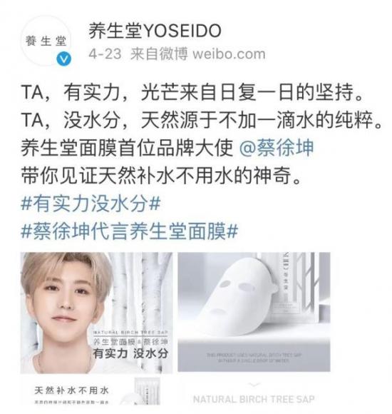 借势蔡徐坤C位出道的话题热度,养生堂官方微博基于艺人实力和产品调性(“不添加一滴水”的桦树汁面膜)的契合度顺势打出了“有实力没水分”的代言宣言,引发了粉丝的刷屏回应。短短三小时,该条微博被转发119万,并将关注度顺利转化为购买力——官宣当天,养生堂唯一的一款桦树汁面膜几乎被售卖一空。