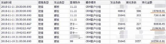 以下是一组真实的双十一大促数据,该客户短信的转化率也是非常高: