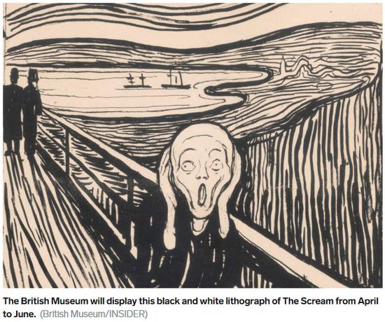 Bartrum told INSIDER: "This rare version of The Scream that we're displaying at the British Museum makes clear that Munch's most famous artwork depicts a person hearing a 'scream' and not, as many people continue to assume and debate, a person screaming."?