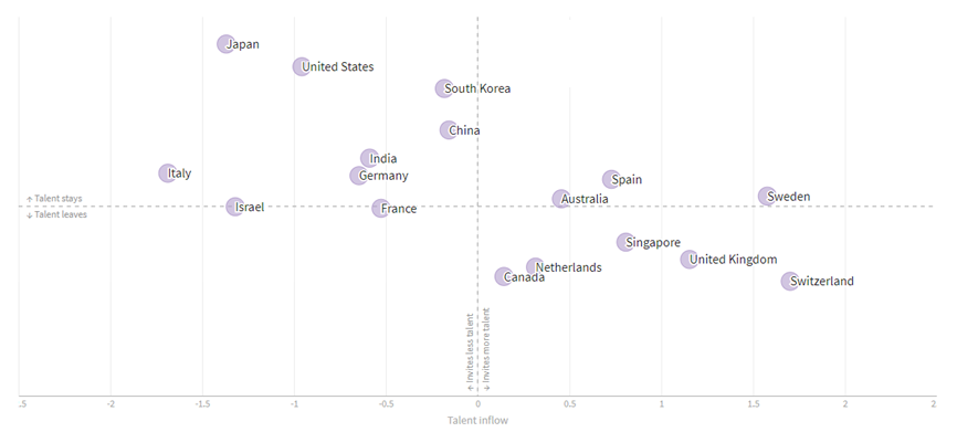 注:图中X轴表示人才流入,Y轴表示人才流出,数值表示与均值的标准差