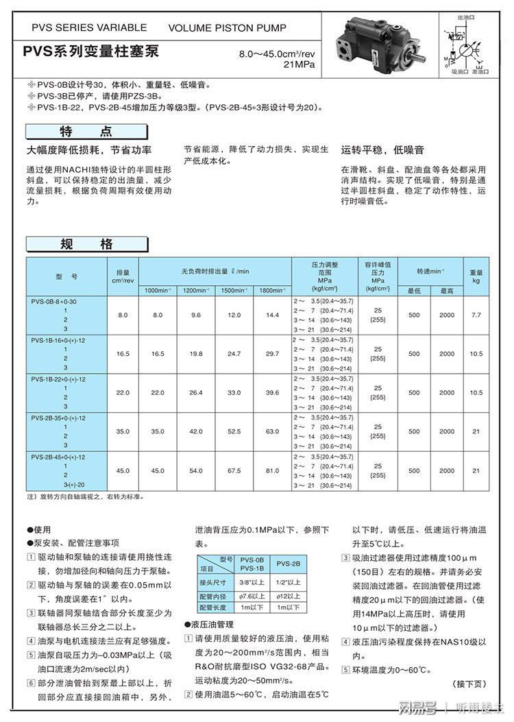 PVS系列变量柱塞泵常见的标准型号:
