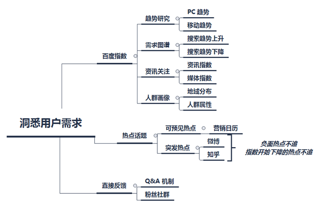 洞悉用户需求的 3 大方式,百度指数、热点话题和直接反馈。
