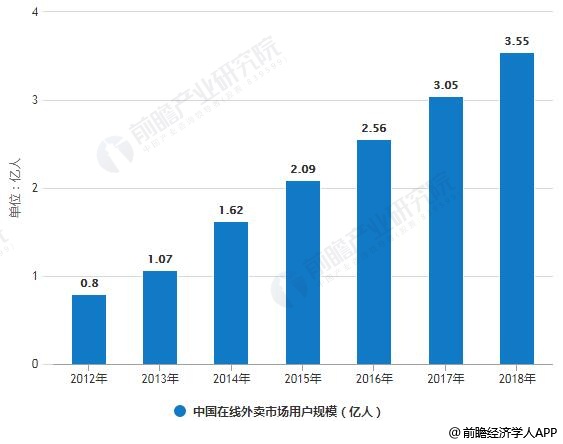 2012-2018年中国在线外卖市场用户规模统计情况及预测